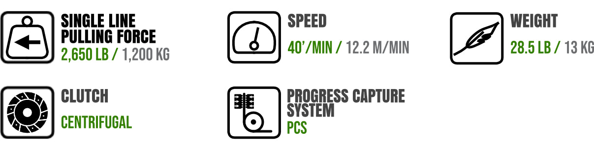 Featuring a unique stainless steel rope brake* (progressive capture system) to hold the load in place, a centrifugal clutch for better control, a protective plate to fit your foot at start up and tension rode on entry hook to prevent rope entanglement.