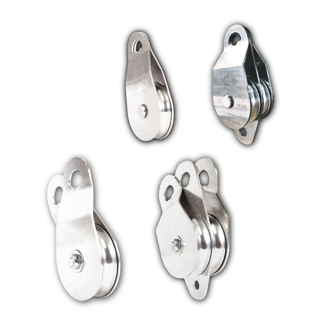 Vervielfältigen Sie Ihre Zugkraft mit Hilfe von Umlenkrollen um das zwei-, drei- oder vierfache. Sie können sie auch verwenden um die Zugrichtung oder -winkel zu ändern. Durch ihre schwingenden Seitenplatten ist es nicht notwendig das Seil einzufädeln und sie lassen sich sehr schnell montieren. Des weiteren halten sie das Seil davon ab sich aus der Rolle zu lösen wenn sie geschlossen sind. Außerdem können die selbstischernden Umlenkrollen die Ladung festhalten, was in vielen Situationen sehr nützlich sein kann.