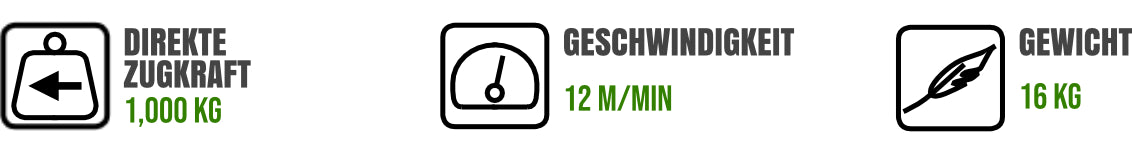 Für mehr Geschwindigkeit, ist optional eine größere Trommel von 85mm erhältlich, um eine 50% schnellere Zuggeschwindigkeit von 18m pro Minute zu erreichen.